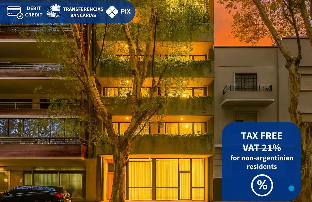 A kitchen is equipped with tea and coffee-making facilities, as well as a microwave, a refrigerator, and kitchenware for self-catering purposes. The nearest airport is Jorge Newbery, 10 km from Deluxe Apartments In Palermo, and Humboldt y Paraguay bus station is 5 minutes' walk away.